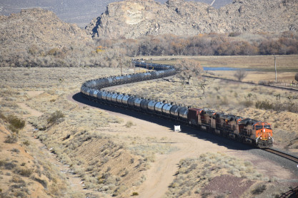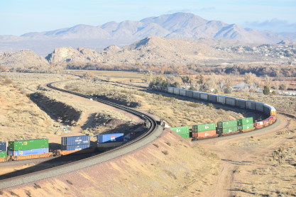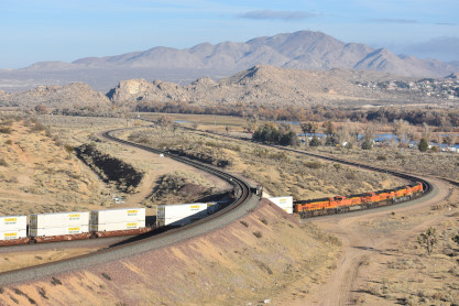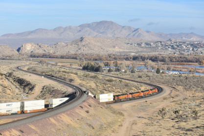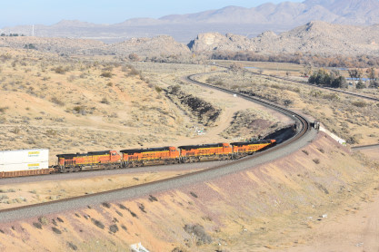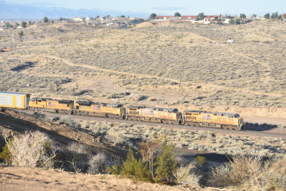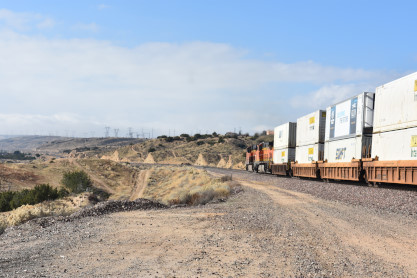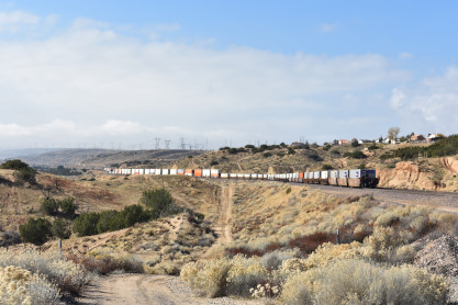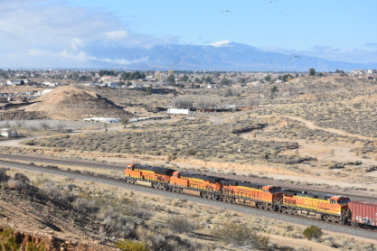 BNSF 7416 West. We starting our journey back but stopped at the Martinez Spur, east of Summit.