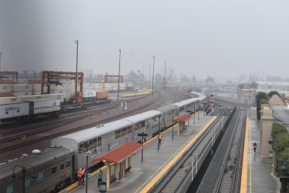 The BNSF 2019 Christmas train at the San Bernardino station. We parked and walked out on the bridge to get some more pictures.