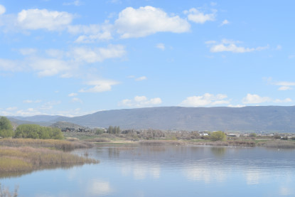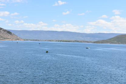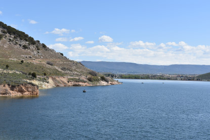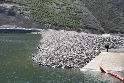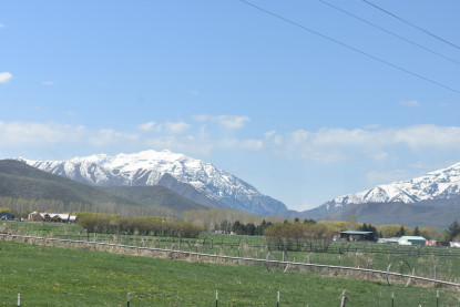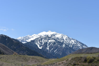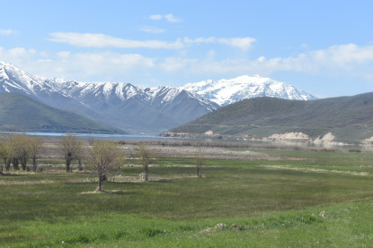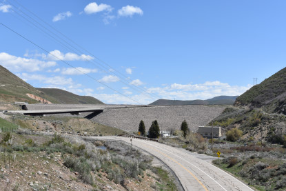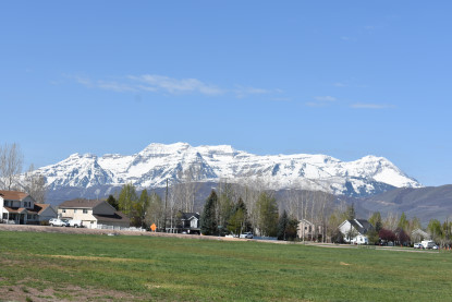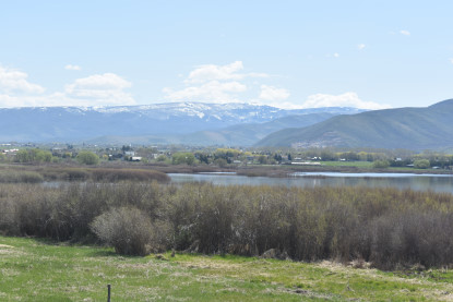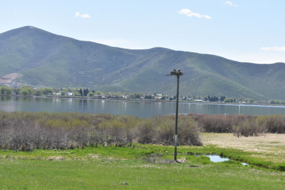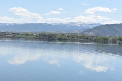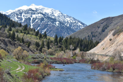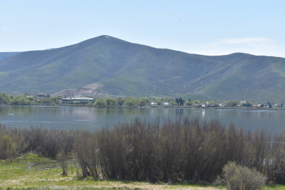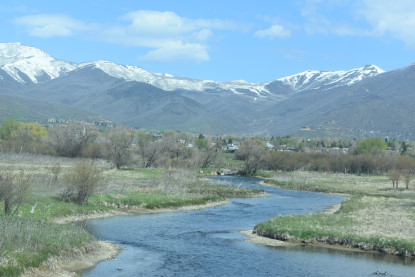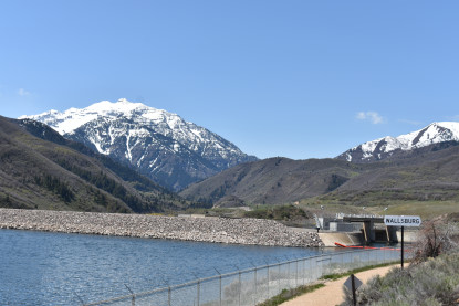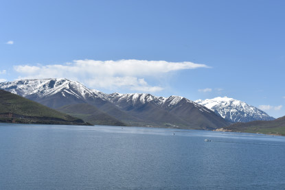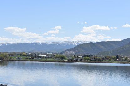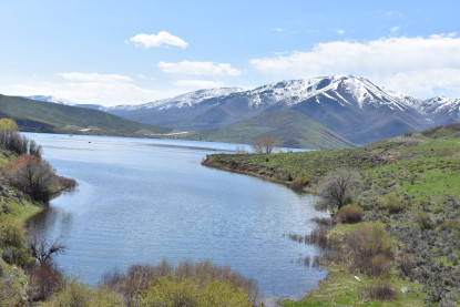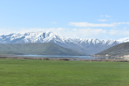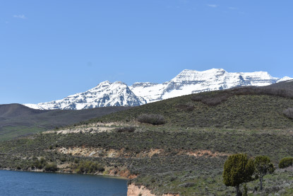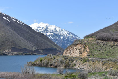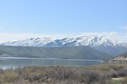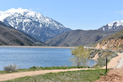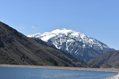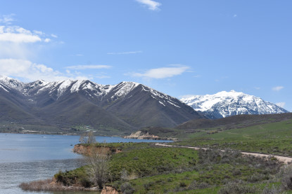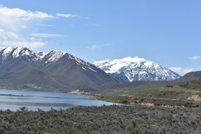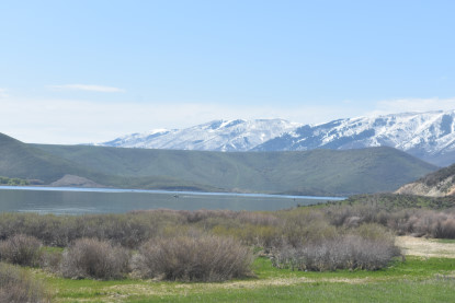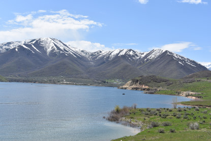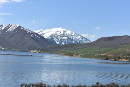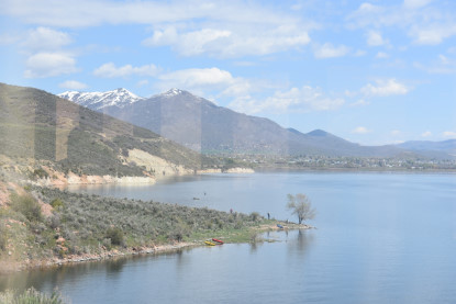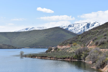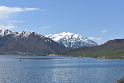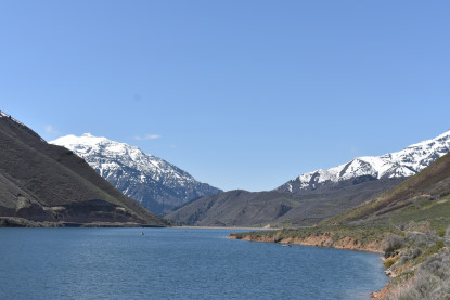 Snowcapped peaks rule the scene over Deer Creek Lake.