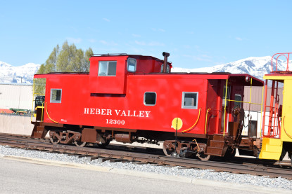 Heber Valley steel caboose 12300 built as Burlington Northern 12300 in 1980 by International Car Company and donated in 2001.