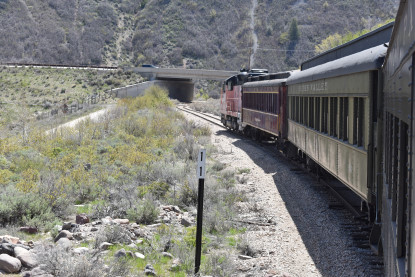 The railroad line is approximately 16 miles long. A typical round trip ride on the train takes about 3 hours. There are a total of four passing sidings outside of the Heber yard limit.