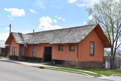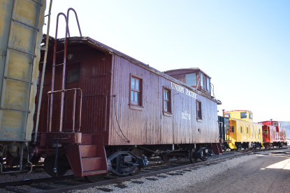 Colorado and Southern wooden cupola caboose 10593, originally Great Western 7593. It is in service as Union Pacific 3270, a simulation of their only end-cupola wooden caboose. We moved the car to the parking area across the street.
