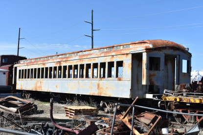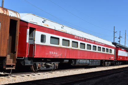HVRR business car 100 built by Pullman in 1912 as Chicago Rock Island & Pacific business car 1858, named "Indiana" then sold to Western Pacific in 1916 and named "Nomad". The Denver and Rio Grande Western purchased the car in 1925 and it was assigned to railway's president. It was retired by D&RGW in October 1965 and displayed at the Forney Museum in Denver. In August 1987 it became New York, Susquehanna & Western 510 "Otto Kuhler" and was sold to Heber Valley Railroad in 2016.