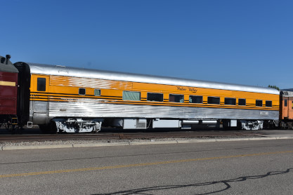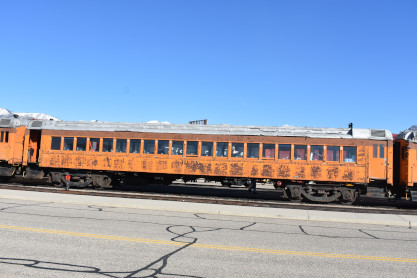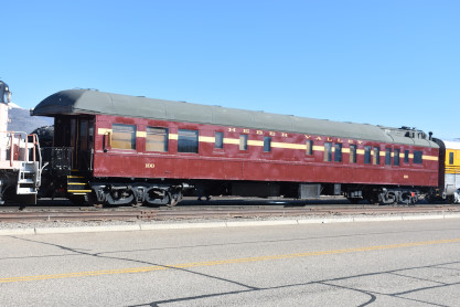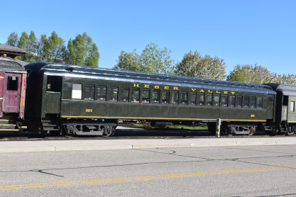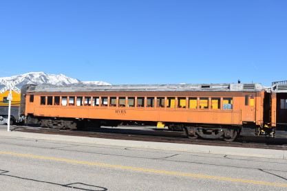 Heber Valley business sar 100, built by Pullman in 1912 as Chicago Rock Island & Pacific business car 1858, named "Indiana" then sold to Western Pacific in 1916 and named "Nomad". The Denver and Rio Grande Western purchased the car in 1925 and it was assigned to railway's president. It was retired by D&RGW in October 1965 and displayed at the Forney Museum in Denver. In August 1987 it became New York, Susquehanna & Western 510 "Otto Kuhler" and was sold to Heber Valley Railroad in 2016..