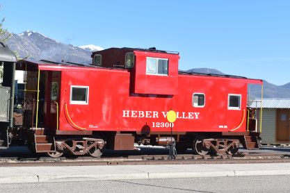 Heber Valley steel caboose 12300 built as Burlington Northern 12300 in 1980 by International Car Company was my assignment on the train. I met an NRHS member who walked down to those two stations with me in Heber City.