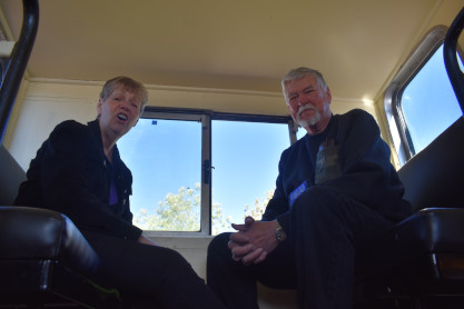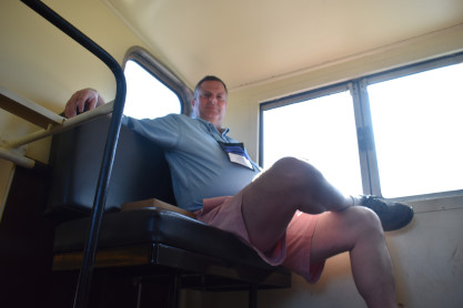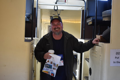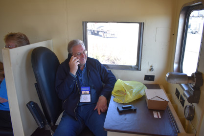Everyone had their own ideas of what happened. Skip Waters then came back and told me that the engine and business cars had both derailed, after which I let my passengers know the new plan. The trip could still happen if both pieces could be re-railed, we would leave at noon and go straight to Vivian Park and return, but both photo runbys would be cancelled. Everyone thought that was a good idea.