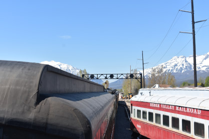 Views of the derailed car in Heber City on our way out of town. Once we arrived at Deer Creek Lake, I gave a running commentary most of the way back and collected the lanyards for use in the future then thanked my pasengers and had them gave a hand to Chris, our bus driver. We returned to the Radisson Hotel where we unloaded the bus for the final time and turned in my time statement, vest and radio. That ended my 2019 NRHS duties. Robin returned and we both said goodbye to Elizabeth before going to my car. We got out of the parking lot and turned in our keys before we drove all the way to Ely, Nevada.