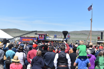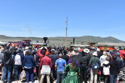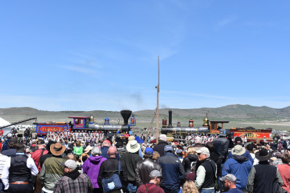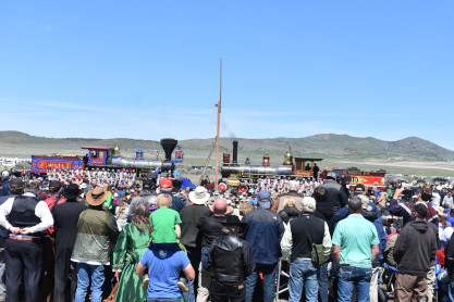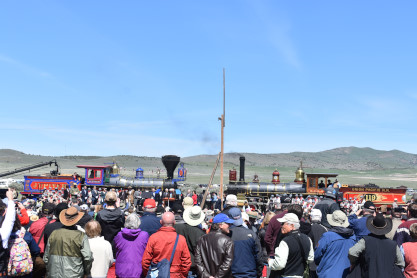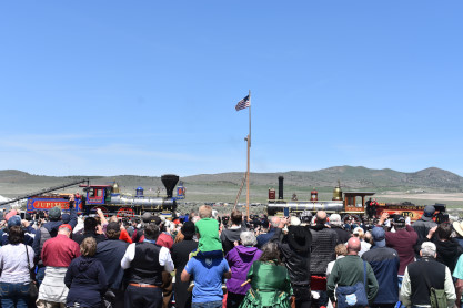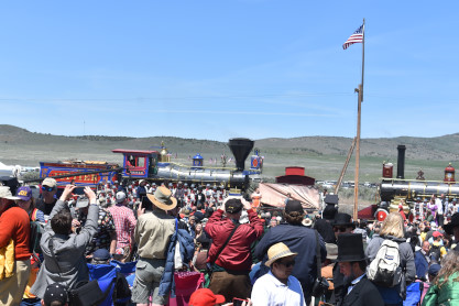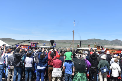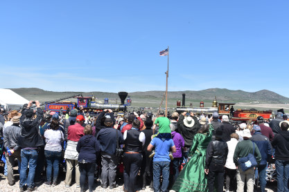 Spectators watching the ceremonies take place at Promontory Summit on May 10, 2019, 150 years to the day of the original.
