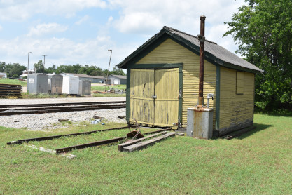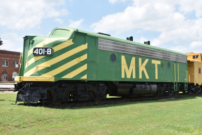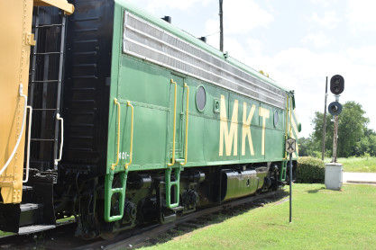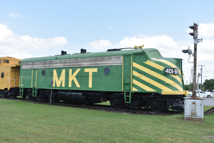 Across the tracks from the railroad display is the MKT station. Also called Union Depot, it was the transportation center of the city and was used by other railroads. These included the Frisco and the Houston and Texas Central later to become part of the Southern Pacific Railroad. The Katy Depot and a small part of the once huge Ray Yards are all that remain of a major point on the Katy System. The former site of the original Denison Union Depot is not far away, it was used till the opening of the Katy Depot around 1914. Although all MKT passenger service ended on July 1, 1965, this depot remained the general offices for the railroad till its merger with the Union Pacific Railroad.
