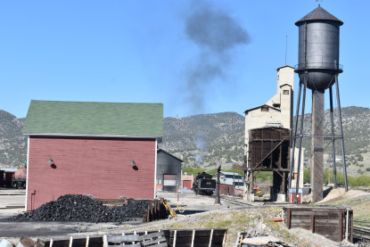Nevada Northern 40 started reversing towards us then stopped to throw a switch and headed to the East Ely station another way. We walked back to the station area.