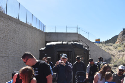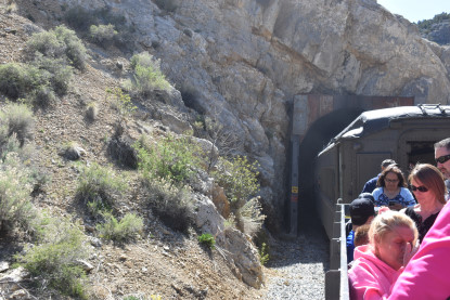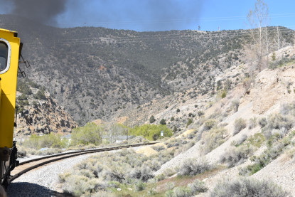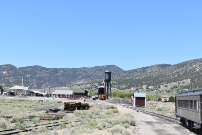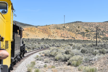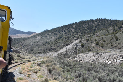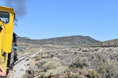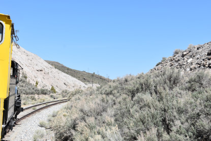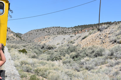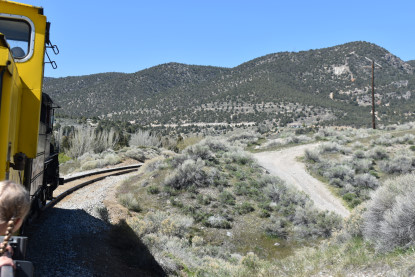 Views along my new rail mile by going this way, or rare mileage. They stopped on the grade crossing and unloaded anyone who wanted to take a shop tour this morning. With Robin still under the weather, we rode back to the East Ely station then returned to the car and drove down US 97 to our first stop on the way home at Caliente.