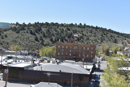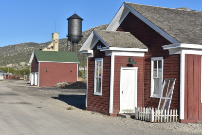 The view toward the Nevada Northern engine house. I drove to the station, parked then returned the bunkhouse keys and picked up our complimentary tickets for this morning's train trip.