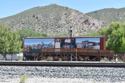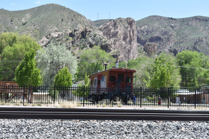 Union Pacific steel bay window caboose 24518 on display, originally Rock Island 17100, built in 1966. From here we took the paved highway down through Rainbow Canyon on the way to Elgin.