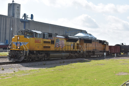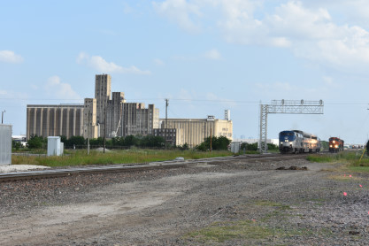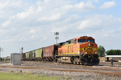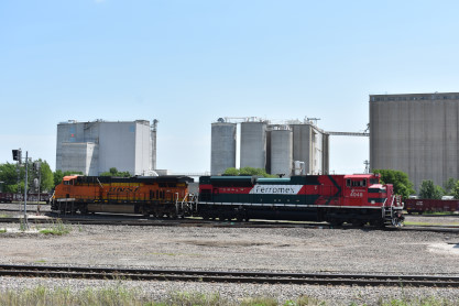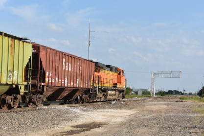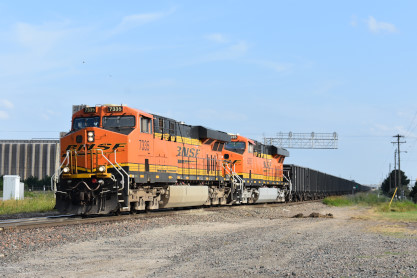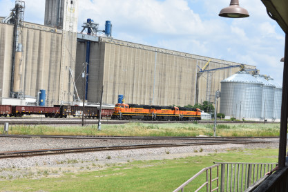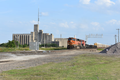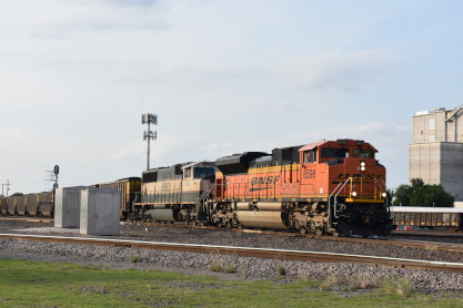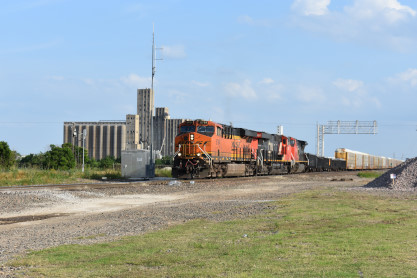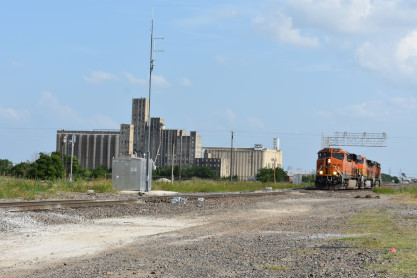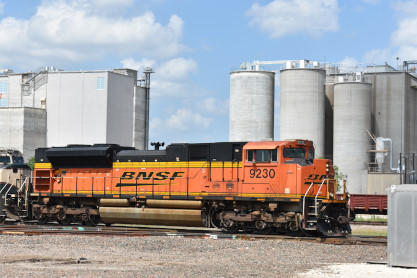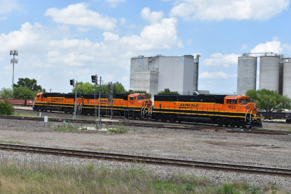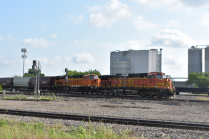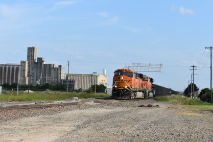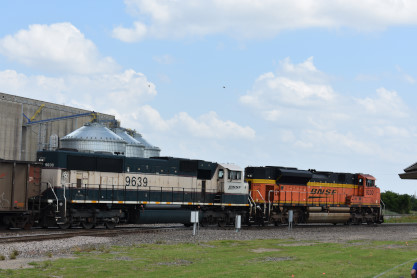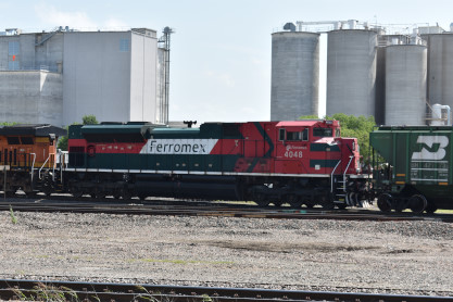 BNSF 6539 with Ferromex SD70ACe 4048 heading into grain siding.