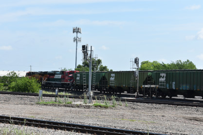 BNSF 266 with SD75 261 and SD60 1423 came north through the interlocking.