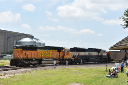 BNSF 5901 East with DPU 9798 and 9935. I ended my call then went inside for the ATCS program which was excellent.