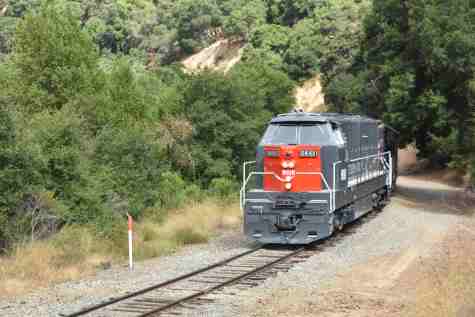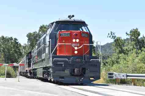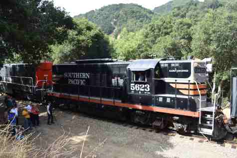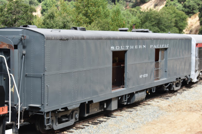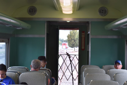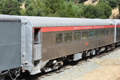 Our train we will be riding at 10:00 AM. The train consisted of KML 4000 9010, Southern Pacific Black Widow GP9 5623, Southern Pacific Baggage Car 6719 and Southern Pacific articulated coaches 2453 and 2454. I would be riding in coach 2454.