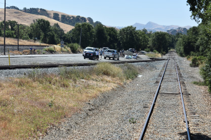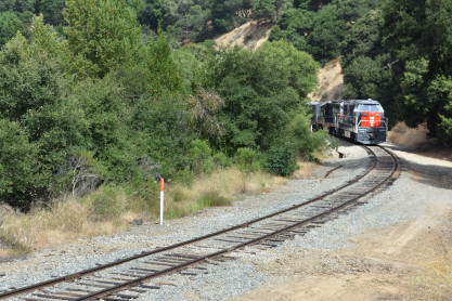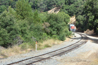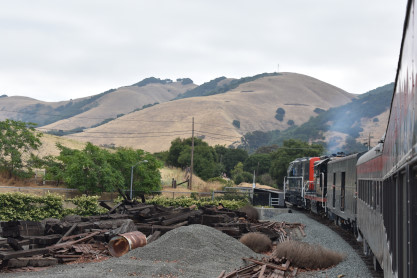 The trip started so I went to the rear vestibule for a good picture. I was on new mileage until we reached the east switch of the wye. We went through Niles Canyon, stopped at the stairs and detrained, leading the way to the photo line at the top of the hill.