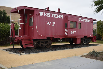 Western Pacific bay window caboose 467 built by International Car in 1973.