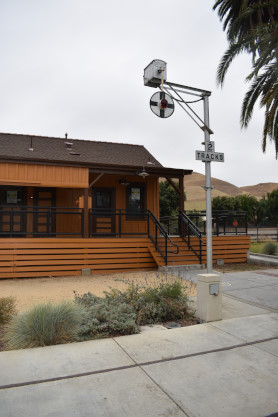 A crossing gate. I went to Walmart to pick up a few items before returning to the parking lot across the tracks then checked in at the Niles Canyon Railway, receiving a gift and my train ticket.