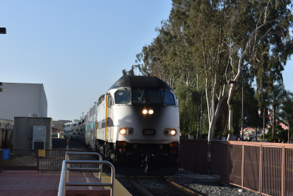 Metrolink 685 3/13/2019Metrolink 685 entering Santa Ana station. We boarded the rear cab car and took seats, placing our luggage in the bicycle area. This train stopped at Orange, Anaheim, Fullerton, Buena Park, Norwalk-Santa Fe Springs and Commerce before arriving in Los Angeles on Track 11. We went down and over to Track 10 to wait for our next train which reversed into the station a few minutes later.