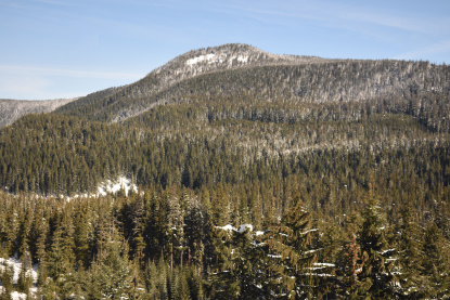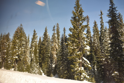 The train at Klamath Falls. We left there time and I went back to my table and sat with Barry Draper and we caught each other up on things. Root Beer Falls was blanketed in deep snow but it was a beautful trip to Chemult which we departed on time. Now the climb to Cascade Summit.