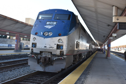 Coast Starlight 3/13/2019The Coast Starlight 14 at Los Angeles. This train had Engines 20 and 45, Viewliner baggage 61047, dormitory 39009, sleeper 32021, sleeper 32013, dining car 38058, Business Class 34510, lounge 33047 with coaches 34049 and 34116. We had Room 5 inland side in Sleeper 32021. The train departed on time but was stopped shortly afterwards by Pacific Surfliner 768. We ran by Glendale and through Burbank to our first stop at Bob Hope Airport. The next stop was Van Nuys as Robin noticed the hills were green. After that we ran through the three tunnels allowing us to exit the San Fernando Valley. We ran to Simi Valley then onto Oxnard; at Strathren we met Pacific Surfliner 774 waiting for us in the siding. We continued to Oxnard then on to Ventura before reaching the shore of the Pacific Ocean. There is now no Wireless Internet on the Coast Starlight!