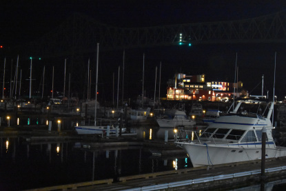 That was followed by Union Pacific 8697 North with CP Rail power in the consist. I read some of the travel magazines and the Amtrak magazine while I waited in the nice warm station on a cool northwest night. After 9:00 PM Robin, Chris Parker and I went outside and waited for Bob and Elizabeth to arrive. Once we put our luggage in their car, we drove out to Astoria and stayed the night at the excellent Astoria Riverwalk Inn. We checked into our room but I had a few pictures to take of the view.