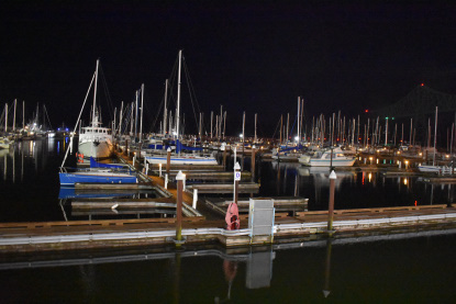 Moss Landing Bay. From here we made our way to Watsonville Jct and Gilroy where darkness was taking hold. We continued to San Jose where Robin and I took another fresh air break. The train proceeded to Oakland Jack London Square station for the last fresh air break of the day. After that we called it a night.