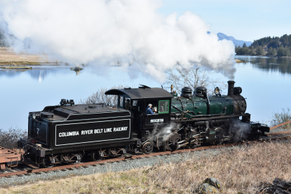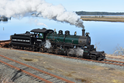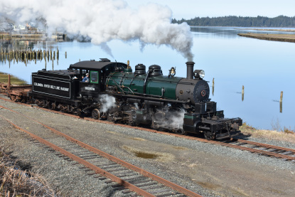 Polson Logging 2 put on an excellent show for us as it arrived in Wheeler. The conductor then aligned the switch for the Skookum, which would be following it into the siding. We waited a little longer and were joined by the passengers from the train.