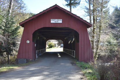 Deep River Logging (Columbia Belt Line) Skookum 2-4-4-2 7 gave us an equally great show as they came by our photo location. We left the paying passengers behind and headed down US-101 to Tillamook where I went to McDonald's for hot cakes and sausage and the rest of our group went next door to Subway. We took this highway south to Otis and turned east on Highway 18 to North Bear Creek Road to Drift Creek Covered Bridge.