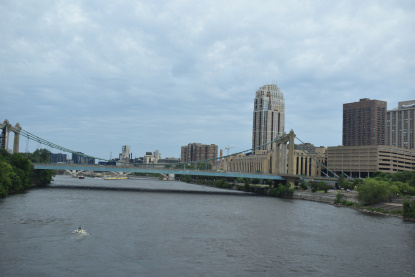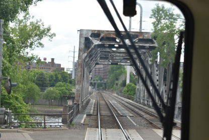 Out of the cab car window, the bridge across the Mississippi River. I thanked the train crew for the great ride on the Northstar, detrained and returned to the Target Field light rail station.