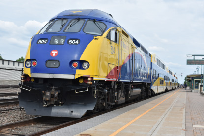 The rear end of our train set. The train left late due to PTC problems with the cab car's computer. It was fixed and soon we were rolling east down the railroad.