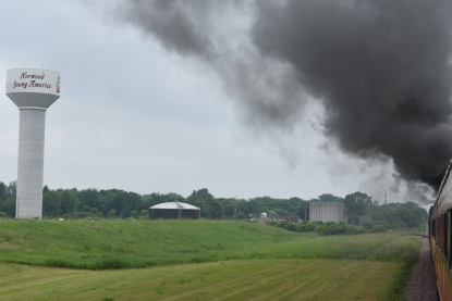 Norwood Young America water tower. We came to a stop and our crew had to throw the switch to the track to Winthrop and then re-set it back to the main to Glencoe.