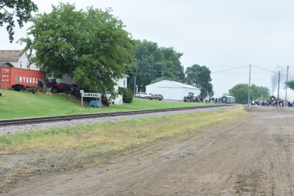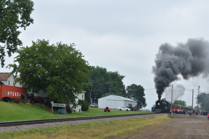 The train coming off the main line and starting our new mileage to the way to Winthrop. We ran to Hamburg where they announced we would do a photo runby and then when we arrived, we detrained and walked through the mud to a stack of cement support pillars which we stood for the runby.