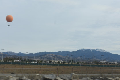 Saddleback Mountain with snow and the Great Park balloon. I arrived there and found the line to get my ticket scanned.