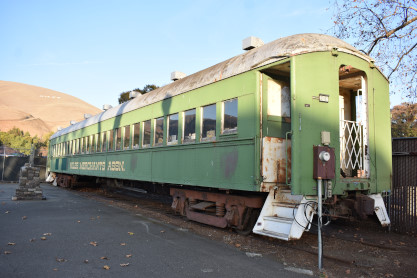 Southern Pacific heavyweight interurban car 2120 which is owned by the Niles Merchants Association. I gave three of them a complete tour of Niles Canyon on the way back to Pleasanton where we picked up dinner at KFC and Wendy's and took it back to the hotel. Elizabeth and I started writing the story but had to stop due to not knowing a location and I finished it up at home where I found the information on the Niles Canyon wikipedia page.