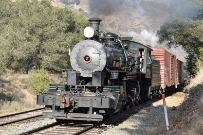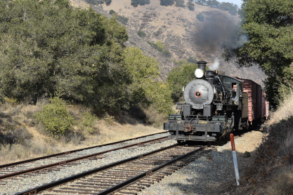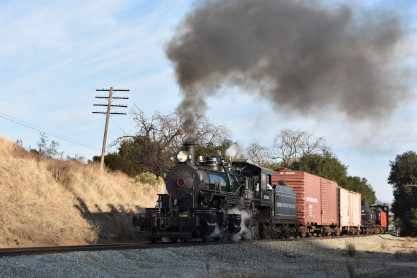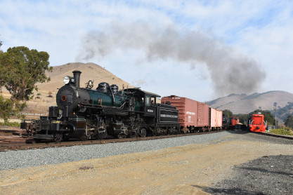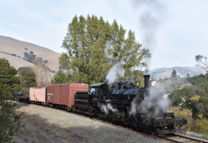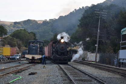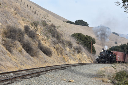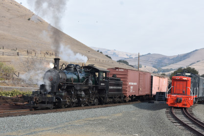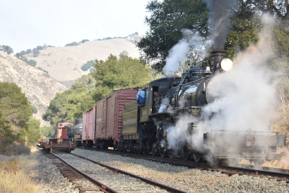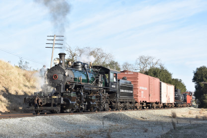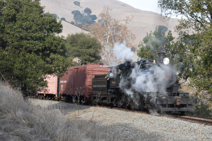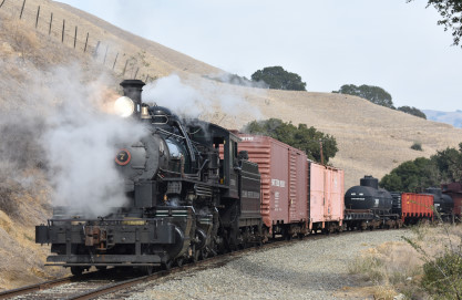 The passenger train returned and we all went back to Sunol, ending an excellent day of railroad photography with the Skookum. What an incredible day this had been. To think of and see this engine as it was, lying on its side in the woods of Washington State to being fully restored to operational status is northing short of a miracle. Elizabeth and I thank the volunteer steam crew and all those on the train for making this day very special for everyone who participated in this charter. After all the great trips I have taken on the Niles Canyon Railway and Elizabeth's three visits over the years, we decided to join this wonderful organization even though we live in Santa Ana.