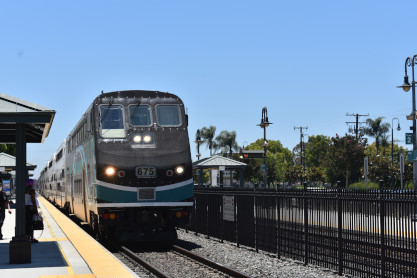 Chris Parker boarded at Santa Ana and I had my entire group of friends with me. Bob Butcher and I got caught up and talked about our days during the second year at McArthur which brought smiles to both of our faces. It turned out that Tom Watson had known me the longest of this group but he admitted that Jeff Hartmann, who unfortunately could not be with us today, knew me longer. Good conversations were held and Greg sang some interesting songs while the rest of us laughed and giggled along. We saw the beach under a red flag due to high waves and plenty of riptides. At Pulgas Road, I showed everyone Mount San Jacinto and they were all amazed that they could see being within a mile of the ocean. The train then arrived at Oceanside and after I had given directions, the group followed me over to Track 2 where we waited for Metrolink 860. The cleaning crew boarded first and we did our thing before everyone else boarded. Good times and laughs plus stories made for an interesting trip back. Chris Parker detrained at Santa Ana and at Orange, we were met by my future wife, Elizabeth, who was able to meet Bob Butcher, whom she had not met before. The rest of us followed me around the crossing gates at Chapman Avenue, thus ending my first and only bachelor party.