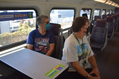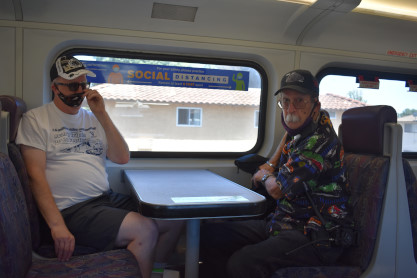 Steve Grande making his first train ride since April 2019. He got off in Fullerton and the three of us continued on to Los Angeles. Once there, we detrained and Greg and Marty went to the store and I sat in front of the door. Once the doors re-opened, we re-boarded the train and started cleaning the rest of the area that my guests would be occupying so they would be safe. Train 664 left Los Angeles on time and headed south. We came in on the south track at Norwalk so I called Steve and told him I would call him at Buena Park but he should get over to Track 3 at Fullerton. Once at Buena Park, I called him back and told him we would be there in five minutes. I then called Bill to get the count of how many guests we had at Orange to make sure we had cleaned enough areas. We then picked up Steve and headed to Anaheim before arriving at Orange and the rest of the party joined us. Everyone boarded and the party began.