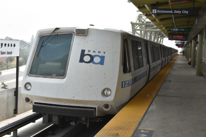 We started the morning by sleeping in late which was a mistake for what we wanted to do. On a time schedule, we would have to decide what we wanted to do today. So after morning preparations, a breakfast eating it in the car at McDonald's, we headed to the BART station in Antioch to start our riding. Since it was a Saturday, there was no charge for parking which was very nice of BART. We put more money on our Clipper cards, not knowing what we would be doing and went down to the track where the train was waiting.