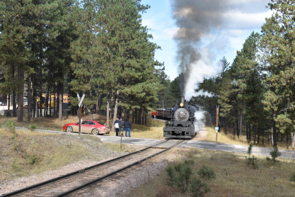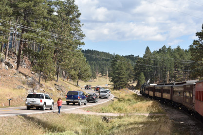 Our ChaseOur first pictures of the train to Keystone with Black Hills Central 2-6-6-2T 110 at the second crossing of Old Hill City Road. We took this road to our next photo location at Twin Springs Road.