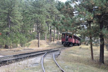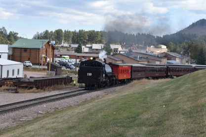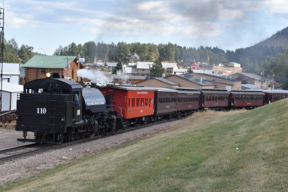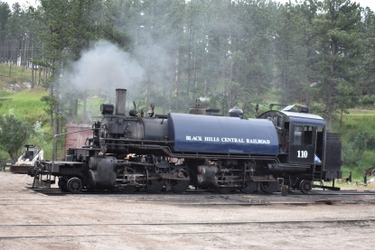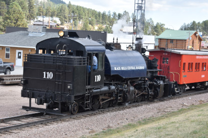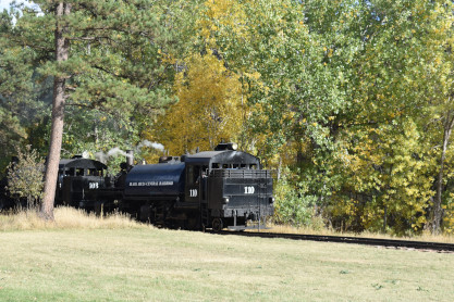 Black Hills Central 110 leading the 11:15 train from Keystone back to Hill City.