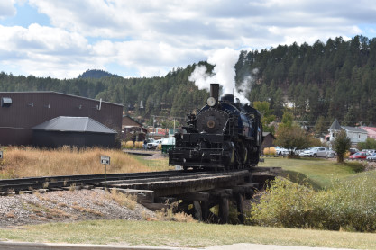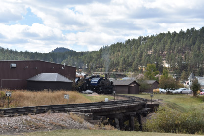 Our final photo location was at Echo Valley Road where I caught the train going both ways. From here, we headed back to Hill City where we picked up our tickets and was told that at 11:00, our goodie bags would be ready. So we walked behind the roundhouse to the other side and a volunteer asked us to go back to the other side, which we did. I did manage to get three pictures.