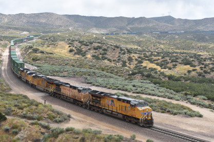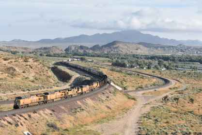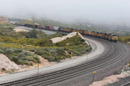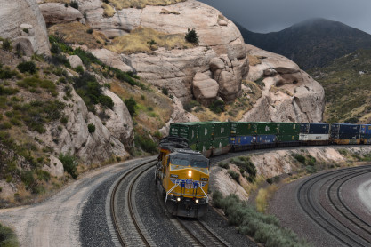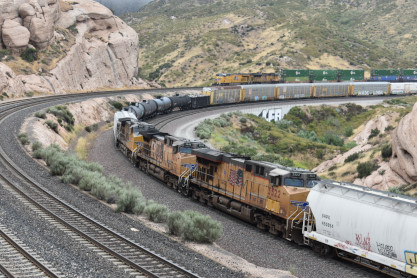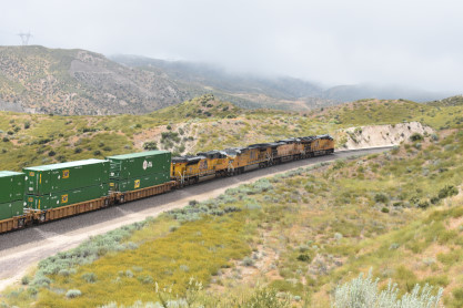 Union Pacific 7308 East leaving Canyon siding. We exited via Cajon and had to stop for one last train.