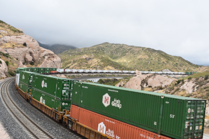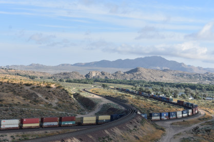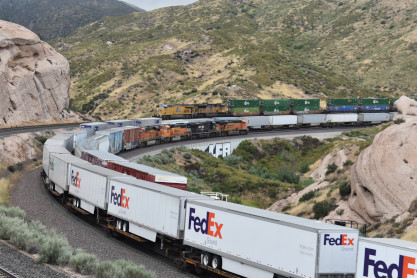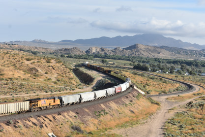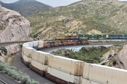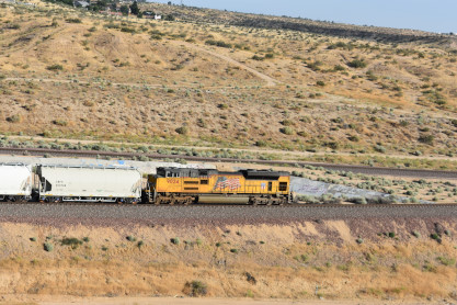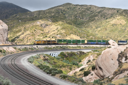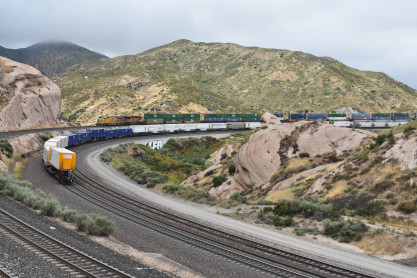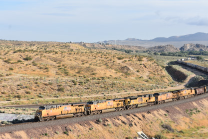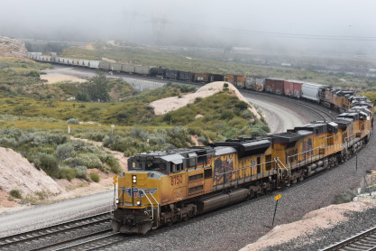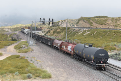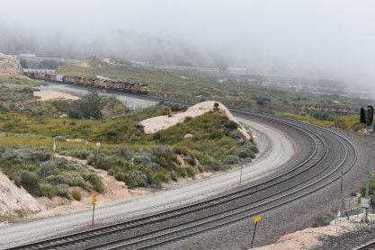 Union Pacific 8750 East with mid-train DPU's UP 6460, 8844 and 5522. UP 7308 East was holding the main with a red signal at East Canyon siding for our tenth and eleventh trains of the morning.