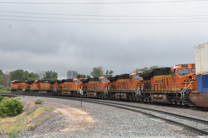 BNSF 6631 East with DPUs 7505 and 5799 was the second train of the day.