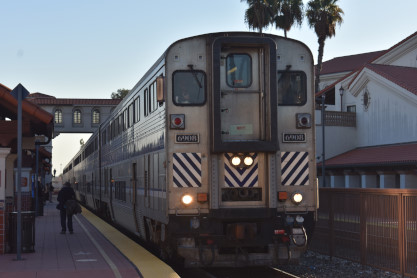Pacific Surfliner 579 11/10/2020The train came in with Elizabeth I boarding the cab car. We departed and made stops at Anaheim and Fullerton then made its final sprint to Los Angeles Union Station where we had a ride into the Metropolitan Lounge by Sam. Once we were in there, I had a Sprite and a piece of coffee cake. At 5:30 PM, they announced that passengers could walk out to Train 4.