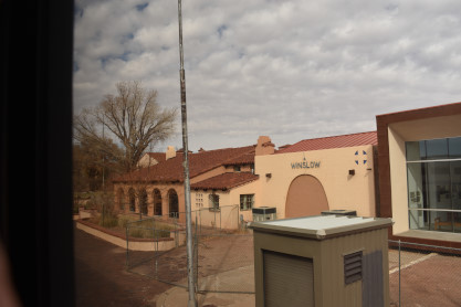 During the slowing for the stop at Winslow, the La Posada Hotel where Elizabeth and I stayed at on our honeymoon.