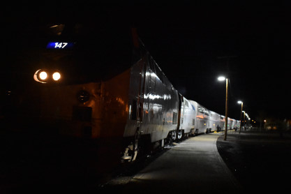 We stopped just east of Riverside at a red signal because a Metrolink train hit a car in front of us so we would be here as long as it takes. They said it might take two hours as it was a death and we were waiting for the Riverside Coroner to arrive on the scene. However, it was not by any means that long. About 15 minutes later we slowly passed the accident site where Metrolink 406, a Riverside line train must have been deadheading to the San Bernardino Metrolink facility. We then went through Colton, went under a Union Pacific stack train and made our way to Rana where Elizabeth would start her new mileage to Kansas City. We did not stop at San Bernardino so Elizabeth will be making her first trip over Cajon Pass tonight. Steven had to make the bed as I could not get the top bunk down and after Hesperia, we called it a night.